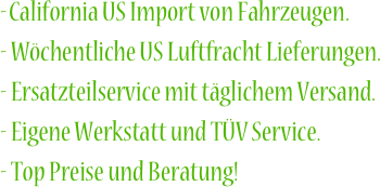 Wir halten für Sie ein grosses Lager an neuen und gebrauchten Teilen für Jeep und klassische Offroad Fahrzeuge bereit. Als Ingenieur Betrieb haben wir uns auf die Restauration und den Umbau klassischer Fahrzeuge spezialisiert. 26 Jahre praktische Erfahrung im US 4x4 Sektor machen uns zu einem kompetenten Ansprechpartner in Deutschland. Wir liefern die meisten Teile direkt aus den USA vom Hersteller. Seltene Blechteile importieren wir aus den Wüstenregionen der USA. Sprechen Sie uns einfach an, wir können Ihnen bestimmt helfen. Unser sehr umfangreicher Zubehör- und Ersatzteilkatalog beinhaltet alles für Jeeps von 1940 bis heute und ist stets aktuell online abrufbar. Zum Stöbern klicken Sie einfach auf den Katalog unten rechts auf dieser Seite! Weiter finden Sie aktuelle Angebote und Spezialteile auf dieser Homepage unter: Special Parts. Wöchentliche Luftfracht Lieferung und monatliche Lieferung von Seecontainern mit Fahrzeugen und Teilen. Wir beraten Sie gerne jederzeit persönlich und das 5 Tage die Woche.